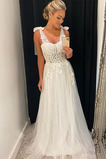 Vestido de novia Encaje Baja escote en V Escote de Tirantes Espaguetis #P2207222