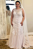 Vestido de novia vendimia Corte Sirena Verano Escote en V Manga tapada #P2205569